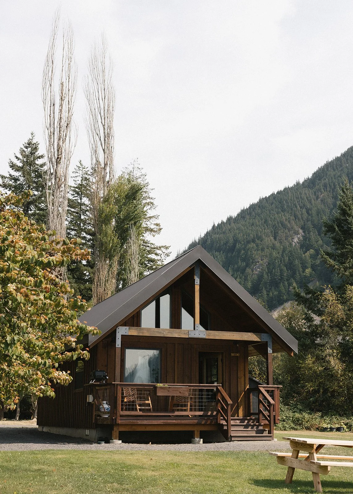 With views stretching from the mountains to the Columbia River, each cabin has its own quiet charm. Step inside and you’ll find the warm scent of cedar, a sense of calm, and the feeling of home.